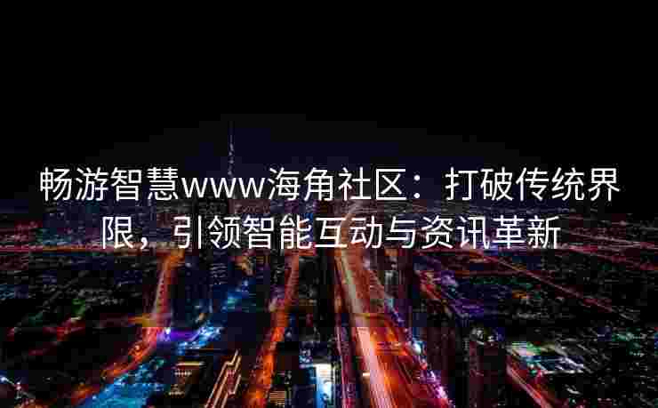 这就是“畅游智慧www海角社区”——一个以智慧为核心,以互联网为纽带的新型社区平台。它不仅仅是一个线上交流的空间,更是一个集智能互动、资讯共享、资源共享于一体的综合性平台。在这里,用户可以突破地域的限制,随时随地与志同道合的人互动、交流、分享,体验前所未有的社区乐趣。