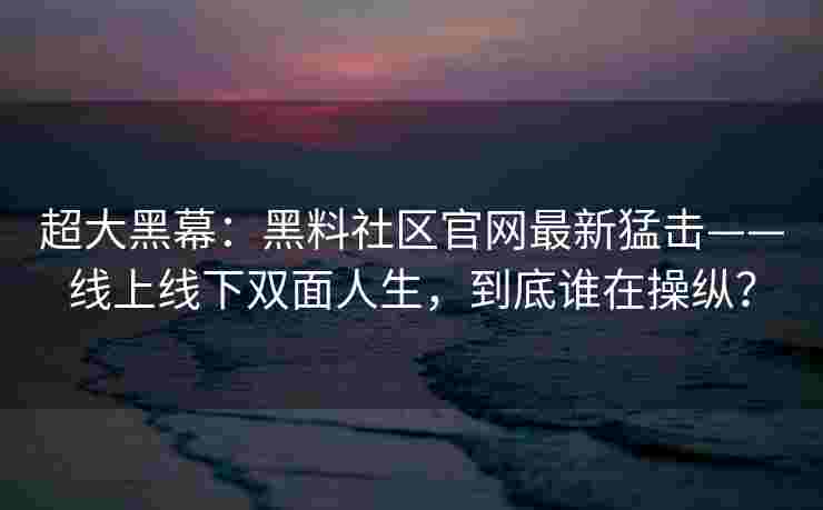 在这个信息爆炸的时代,每个人的生活似乎都变得越来越复杂。我们在线上有着精心修饰的社交形象,朋友圈里永远是光鲜亮丽的生活;线下则是真实的生活状态,工作、家庭、社交交织在一起。这种线上线下的双重生活,看似是一种现代生活的必然产物,但实际上,这背后隐藏着一个巨大的黑幕。