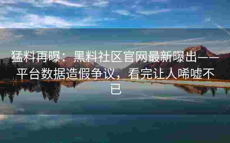 猛料再曝:黑料社区官网最新曝出——平台数据造假争议,看完让人唏嘘不已